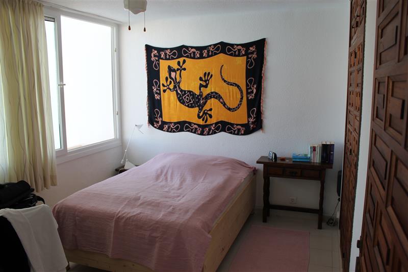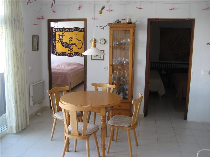 Haus von der Straße gesehenFlur und EingangWohnzimmeroffene Küche mit ThekeEßbereich und Zugang zu den SchlafzimmernSchlafzimmer 1Schlafzimmer 2BadezimmerBalkon im AbendlichtWebweiser RestaurantsPuig de Missa: Blick vom BalkonSal de Ibiza in den Salinen